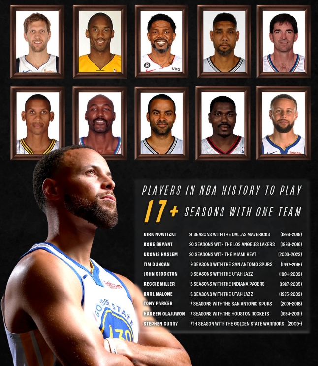 lòng trung thành! Curry sắp trở thành cầu thủ thứ 10 trong lịch sử chơi cho "một đội" trong 17 năm!