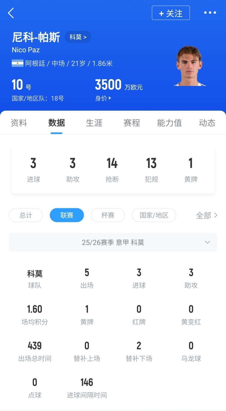Trong vòng 5 của Serie A, Como đã thu hút 1-1 với Cremonese, tiền vệ người Argentina 21 tuổi, Nico Pas đã ghi bàn một lần nữa, và đóng góp 3 bàn thắng và 3 pha kiến tạo trong 5 vòng của Serie A trong mùa giải mới, giành được tất cả 6 bàn thắng và 6 bàn thắng trong đội.