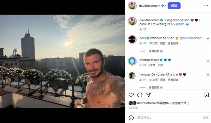 Anh ấy cũng đã đăng một bức ảnh của mình khỏa thân trên ban công của bộ khách sạn trên phương tiện truyền thông xã hội. Điều này truyền tải một thông điệp rõ ràng đến Milan, Tuần lễ thời trang và thậm chí cả bóng đá Anh - ảnh hưởng của Beckham chưa bao giờ mờ dần.
